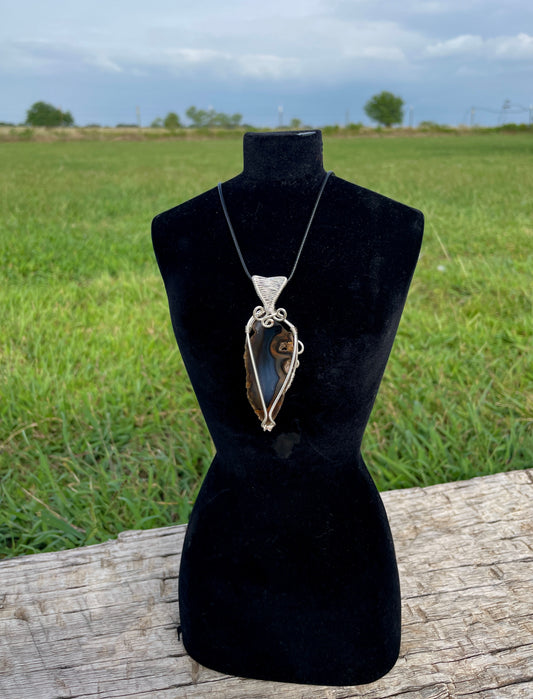 Silver Agate Slice Pendant
